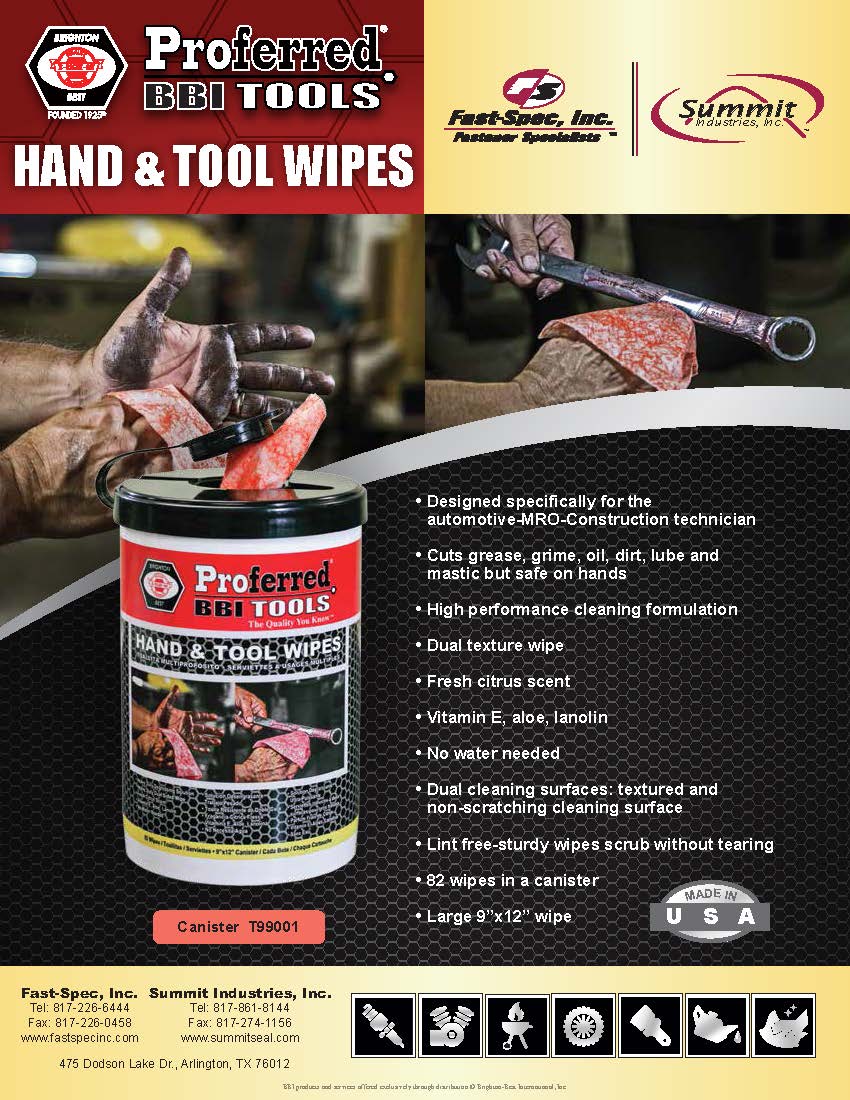 • Hand & Tool Wipes • Lifetime Warranty